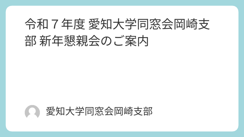 令和7年度 愛知⼤学同窓会岡崎⽀部 新年懇親会のご案内